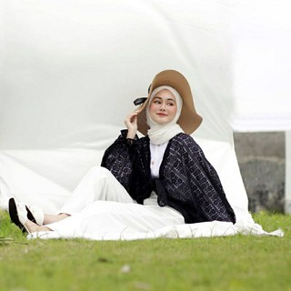 Cardigan Lace Outer Brokat Pendek Putih Modis Lengan Balon from i0.wp.com
